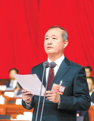 陳吉寧同志作政府工作報(bào)告。(戴冰 攝)