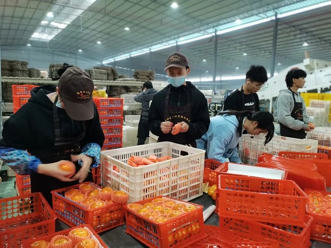 大學(xué)生專班在打包車間學(xué)習(xí)打包