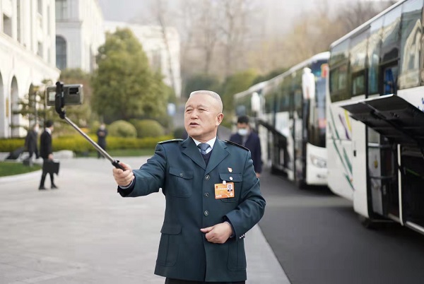 “春風(fēng)又綠華夏地,祖國到處是春天。又是一年兩會時,特約記者何健忠很高興又與大家見面啦?!?月3日早上7點半,趕在代表團(tuán)出發(fā)前,全國人大代表,中國郵政集團(tuán)泰興市分公司城區(qū)分局局長、江平路支局支局長何健忠拿出自拍桿,連續(xù)第三年拍攝起了“上會vlog”,希望給家鄉(xiāng)人民帶來全國兩會的“第一視角”消息。