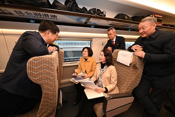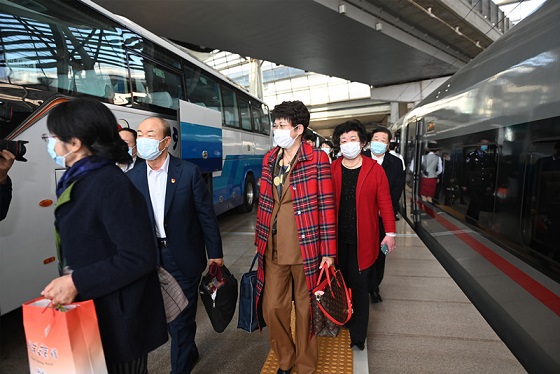 全國人大代表乘高鐵前往北京。
