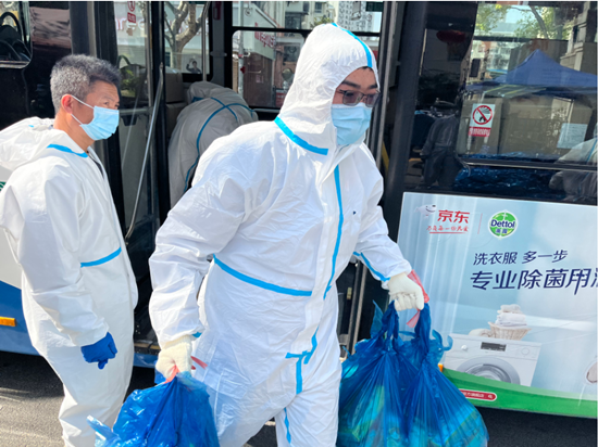 近日,上海市浦東新區(qū)啟用首批“公交送菜專線”,15輛公交車為沿線20個盒馬配送點運送民生物資,服務(wù)封控區(qū)內(nèi)上千戶居民。一個來回,公交車能裝載300份蔬菜包,運送能力是一般電瓶車和平板車的20倍。