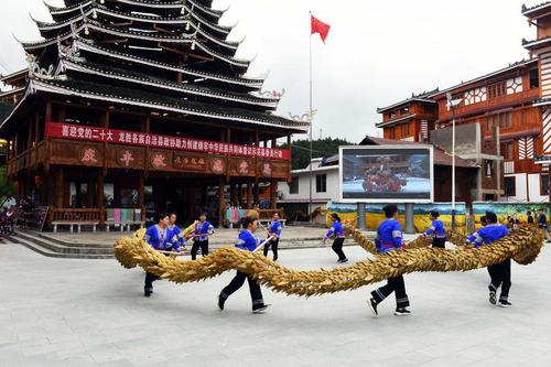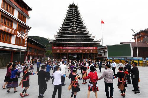 4月29日,廣西壯族自治區(qū)桂林市龍勝各族自治縣政協(xié)舉行助力創(chuàng)建鑄牢中華民族共同體意識示范縣工作推進會?;顒又?,政協(xié)委員們視察了助力鄉(xiāng)村振興示范點,與當?shù)囟弊迦罕娞稹岸嘁眻F結舞,感受龍勝民族團結進步事業(yè)發(fā)展帶來的喜人變化。(吳生斌 攝)