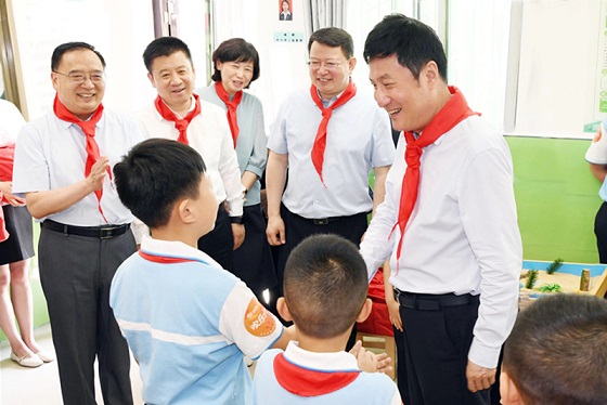 第五橋小學(xué)為城中村小學(xué),90%的學(xué)生為外來務(wù)工人員子女,其中困難兒童25人。郭大為聽取了學(xué)校基本情況介紹,觀看了學(xué)生美術(shù)教學(xué)活動(dòng),向孩子們致以節(jié)日問候,鼓勵(lì)他們鍛煉好身體、學(xué)習(xí)好知識(shí),做一個(gè)對(duì)社會(huì)有用、讓他人喜歡的人。他指出,關(guān)愛兒童就是點(diǎn)亮希望,要給每一名兒童創(chuàng)造美好的學(xué)習(xí)生活環(huán)境,讓向上向善向美的種子早早扎根心靈深處。要嚴(yán)格依法保護(hù),履行法定職責(zé),加快構(gòu)建未成年人保護(hù)工作網(wǎng)絡(luò)體系,合力做實(shí)做細(xì)各項(xiàng)工作,依法維護(hù)好未成年人的合法權(quán)益,用行動(dòng)畫好未成年人保護(hù)的“同心圓”。
