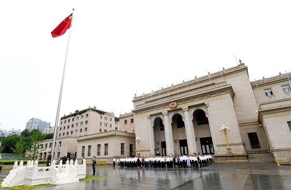 7月1日,全國(guó)政協(xié)機(jī)關(guān)在全國(guó)政協(xié)禮堂(中共八大會(huì)址)前舉行升國(guó)旗儀式,慶祝中國(guó)共產(chǎn)黨成立101周年。全國(guó)政協(xié)副主席兼秘書長(zhǎng)、機(jī)關(guān)黨組書記李斌出席。全國(guó)政協(xié)副秘書長(zhǎng)、機(jī)關(guān)黨組副書記鄒加怡主持儀式,駐會(huì)副秘書長(zhǎng)、機(jī)關(guān)黨組成員、專門委員會(huì)駐會(huì)副主任、有關(guān)部級(jí)領(lǐng)導(dǎo)以及機(jī)關(guān)黨員代表參加。記者 田福良 攝