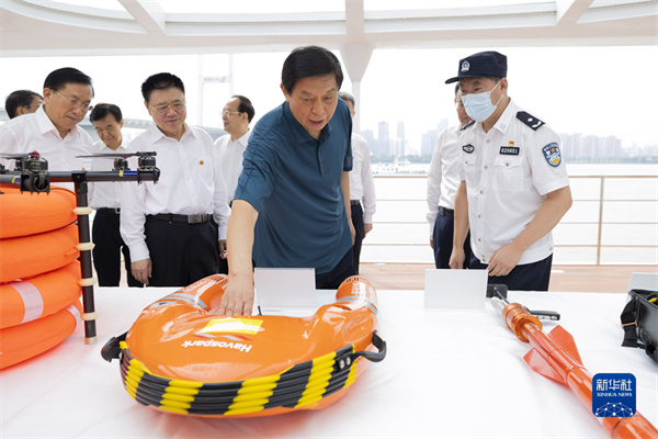 6月30日至7月4日,中共中央政治局常委、全國(guó)人大常委會(huì)委員長(zhǎng)栗戰(zhàn)書率全國(guó)人大常委會(huì)執(zhí)法檢查組在湖北檢查長(zhǎng)江保護(hù)法實(shí)施情況。這是7月3日,栗戰(zhàn)書在漢口江灘碼頭考察長(zhǎng)江大保護(hù)工作情況。新華社記者?黃敬文?攝