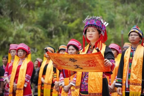 作為布努瑤子孫、大化縣政協(xié)主席潘慧華在祭祀始祖“密洛陀”儀式上恭讀祭文,表達緬懷祖先、感謝黨恩、喜悅激動之情和弘揚傳統(tǒng)文化、投身鄉(xiāng)村振興、爭創(chuàng)美好未來之號召。