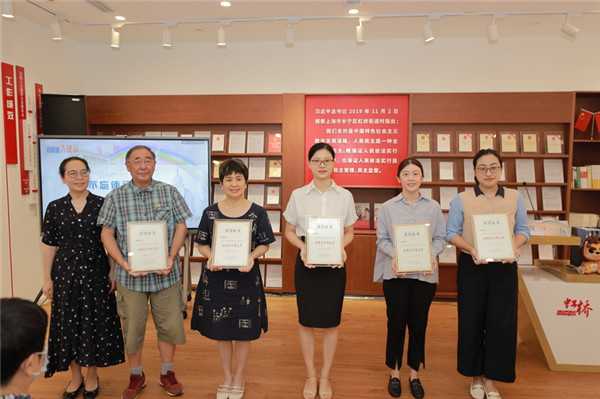 活動(dòng)現(xiàn)場(chǎng),萍聚工作室、華東政法大學(xué)附屬中學(xué)、上海市第一中級(jí)人民法院、上海市長(zhǎng)寧區(qū)人民法院等單位獲頒特別貢獻(xiàn)獎(jiǎng),榮華居民區(qū)黨總支第一書記盛弘、君合律師事務(wù)所上海分所合伙人劉正東、上??得髀蓭熓聞?wù)所主任吳新慧、“樂賢薈”公益組織負(fù)責(zé)人王煊熔和虹橋街道長(zhǎng)虹居民區(qū)居民夏云龍等獲頒了“優(yōu)秀立法信息員”獎(jiǎng)。
