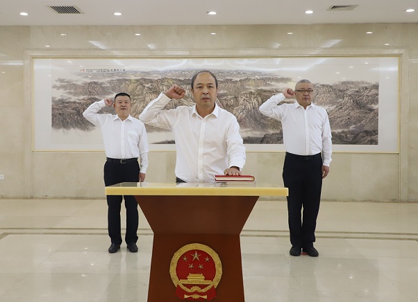 會后舉行憲法宣誓儀式,本次會議決定任命的省教育廳廳長張國珍、省工業(yè)和信息化廳廳長盛云峰、省審計廳廳長郝文杰進行了集體宣誓。