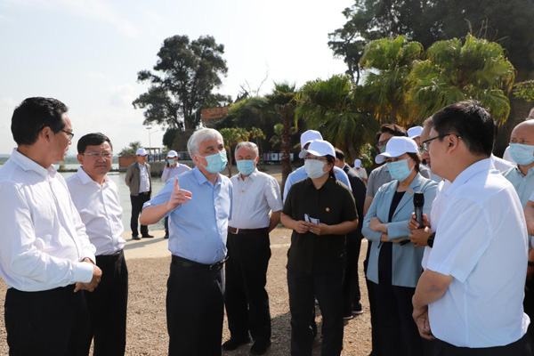 8月17日,全國(guó)人大常委會(huì)副委員長(zhǎng)丁仲禮(左三)率全國(guó)人大常委會(huì)執(zhí)法檢查組在昆明海晏村落詳細(xì)了解滇池重點(diǎn)水域“十年禁漁”工作情況。馮添?攝