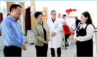 圖為全國(guó)人大代表藍(lán)景芬(左二)在浙江麗水景寧畬族自治縣大均鄉(xiāng)梅花圩村巡回診療點(diǎn)調(diào)研基本公共服務(wù)一體化工作。