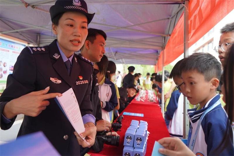 課室外,多部門聯(lián)合打造的“法治移動(dòng)課堂”同步鋪開,形成全方位普法矩陣。在仿真毒品展示區(qū),禁毒民警結(jié)合新型毒品模型,揭露“跳跳糖”“奶茶粉”等偽裝手段,深刻警示學(xué)生警惕“第一口”誘惑;交警部門將流動(dòng)宣傳車開進(jìn)操場(chǎng),循環(huán)播放本地交通事故警示片,血淋淋的案例讓圍觀學(xué)生直呼“安全帶就是生命帶”?!?/p>