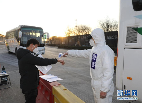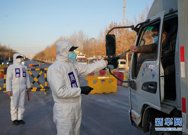 1月10日,石家莊市公安局高新技術(shù)產(chǎn)業(yè)開(kāi)發(fā)區(qū)公安分局民警在藁城區(qū)通往市區(qū)的路口執(zhí)勤。