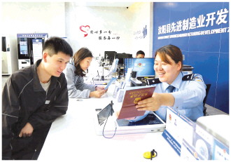 近日,河南省汝陽縣公安局在先進制造業(yè)開發(fā)區(qū)建設公安政務服務大廳并設立“一窗通辦”窗口,把服務送到企業(yè)和群眾“家門口”。圖為5月22日,民警在“一窗通辦”窗口為群眾辦理戶籍業(yè)務。