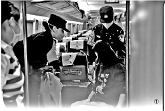 5月8日,廣州鐵路公安局懷化公安處乘警在列車上幫助困難殘疾旅客。張卓 攝
