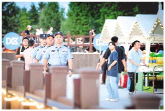7月18日晚,2023烏巾蕩啤酒龍蝦節(jié)在江蘇大公園(興化)正式開幕,現(xiàn)場1040個(gè)座位座無虛席。為了守護(hù)夏日煙火氣,護(hù)航本地夏日經(jīng)濟(jì),興化市公安局提前謀劃周密部署,每日出動(dòng)警力150余人次,以“定人、定崗、定責(zé)”工作原則,確保活動(dòng)安全有序進(jìn)行。圖為執(zhí)勤警力在現(xiàn)場巡邏。