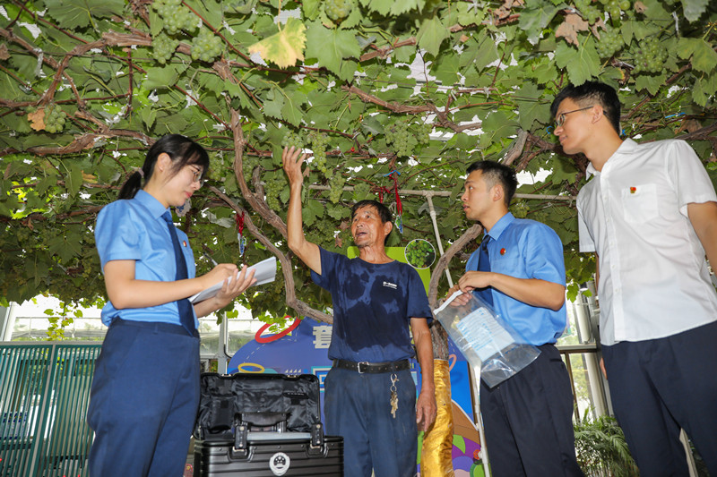 連日來,浙江省紹興市上虞區(qū)人民檢察院公益訴訟部門與相關(guān)職能部門聯(lián)合啟動食品安全公益損害風險防控機制,對上虞野藤葡萄等區(qū)域特色農(nóng)產(chǎn)品現(xiàn)場采摘取樣,并進行農(nóng)藥殘留及重金屬項目快速檢測,從源頭上把好農(nóng)產(chǎn)品質(zhì)量安全關(guān)。圖為上虞區(qū)檢察院檢察官近日對野藤葡萄現(xiàn)場取樣。