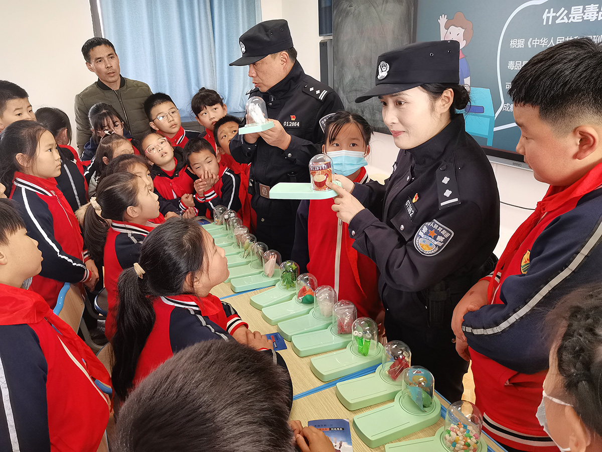 連日來,安徽省南陵縣公安局組織民警進(jìn)校園開展禁毒宣傳,增強(qiáng)中小學(xué)生“珍愛生命、遠(yuǎn)離毒品”意識。圖為近日,民警向南陵縣三里鎮(zhèn)中心小學(xué)學(xué)生介紹新型毒品的危害。