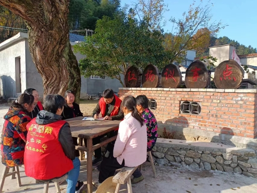 11月23日,在安徽省岳西縣馬石村“紅楊議事點”,村干部和調(diào)解員回訪糾紛當事人。 王霞 攝