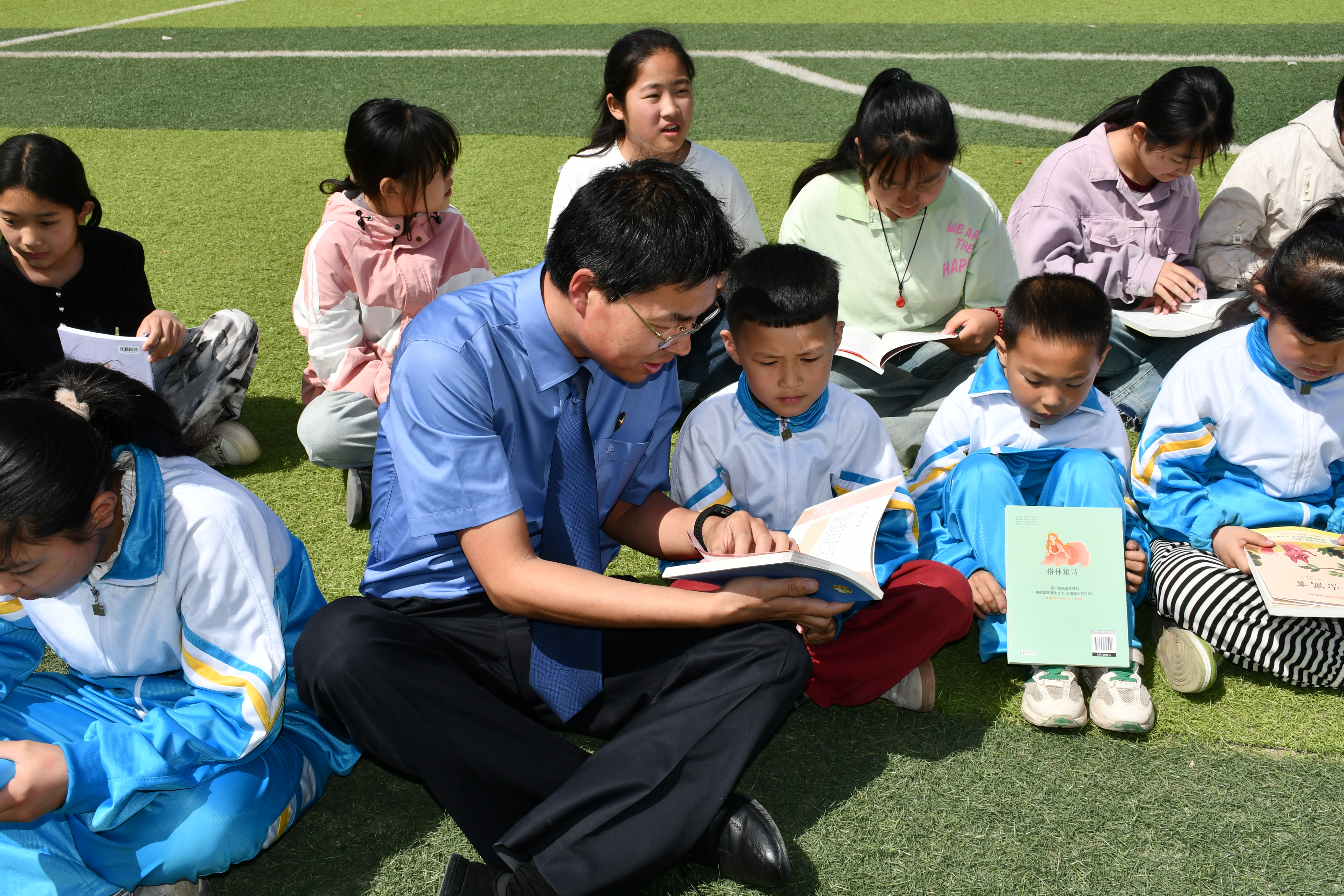 4月23日,河北省邯鄲市廣平縣人民檢察院干警走進(jìn)平固店鎮(zhèn)中心小學(xué)開(kāi)展“檢愛(ài)傳校園 書(shū)香潤(rùn)童年”讀書(shū)分享活動(dòng)。圖為干警帶領(lǐng)學(xué)生們認(rèn)真閱讀精心挑選的圖書(shū)。