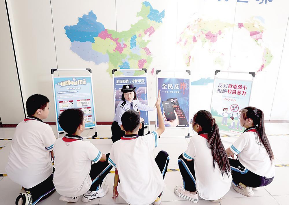 為進一步加強反詐防騙宣傳力度,不斷提高師生防詐騙能力,河北省東光縣公安局反詐中心民警近日深入轄區(qū)中小學校,開展以“創(chuàng)建無詐校園 護航青春成長”為主題的反詐宣傳活動。圖為民警為師生講解反詐知識。