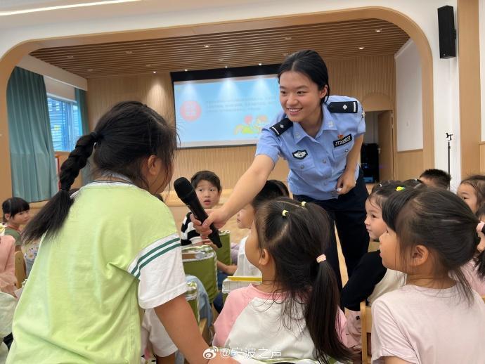 近日,浙江省寧波市公安局鄞州分局福明派出所與轄區(qū)樂禾幼兒園共同舉辦主題為“防拐防騙,為愛護(hù)航”的安全演練活動。民警用生動有趣的故事和朗朗上口的兒歌,將防拐騙安全意識植入孩子們心間。圖為活動現(xiàn)場。