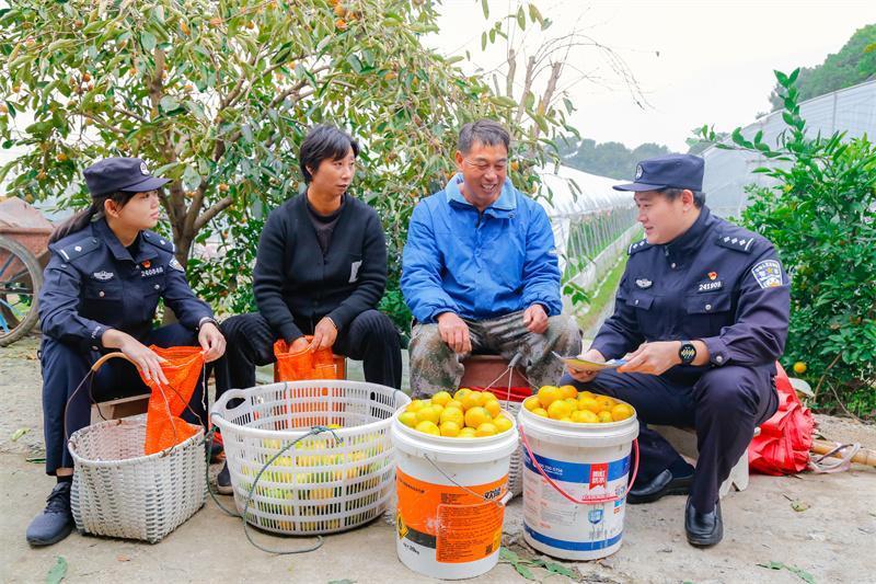 近日,江蘇省蘇州市吳江區(qū)橫扇街道新湖村迎來(lái)柑橘豐收,吳江區(qū)公安局橫扇派出所民警深入轄區(qū)柑橘種植基地開(kāi)展走訪(fǎng)宣傳。圖為民警向種植戶(hù)開(kāi)展反詐宣傳。