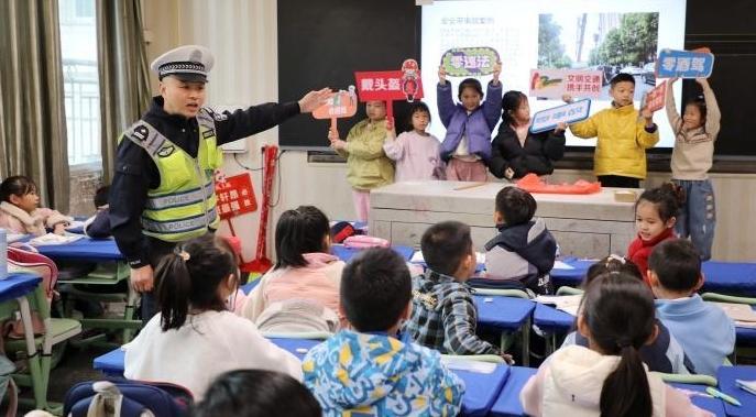 11月20日,江西省九江市公安局交管支隊(duì)第一大隊(duì)組織民警到轄區(qū)東鳳小學(xué)開(kāi)展交通安全宣傳活動(dòng)。圖為民警給學(xué)生們上交通安全課。