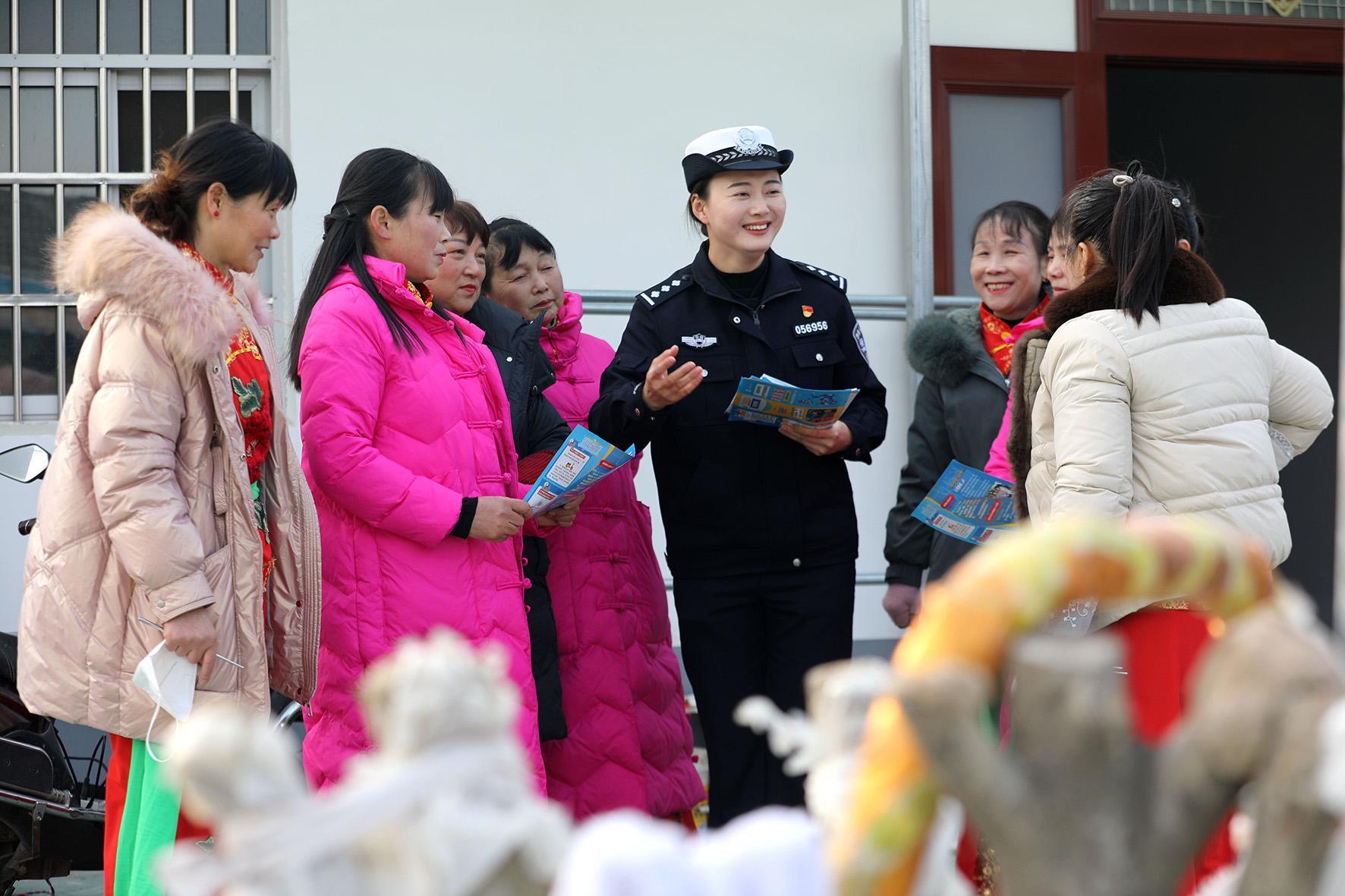 1月8日,安徽省舒城縣公安局交管大隊(duì)聯(lián)合柏林派出所民警走進(jìn)柏林鄉(xiāng)官溝村文化廣場,通過發(fā)放宣傳資料、面對(duì)面交流的方式,向參與非遺“碟子舞”排練的村民宣傳交通安全知識(shí)。