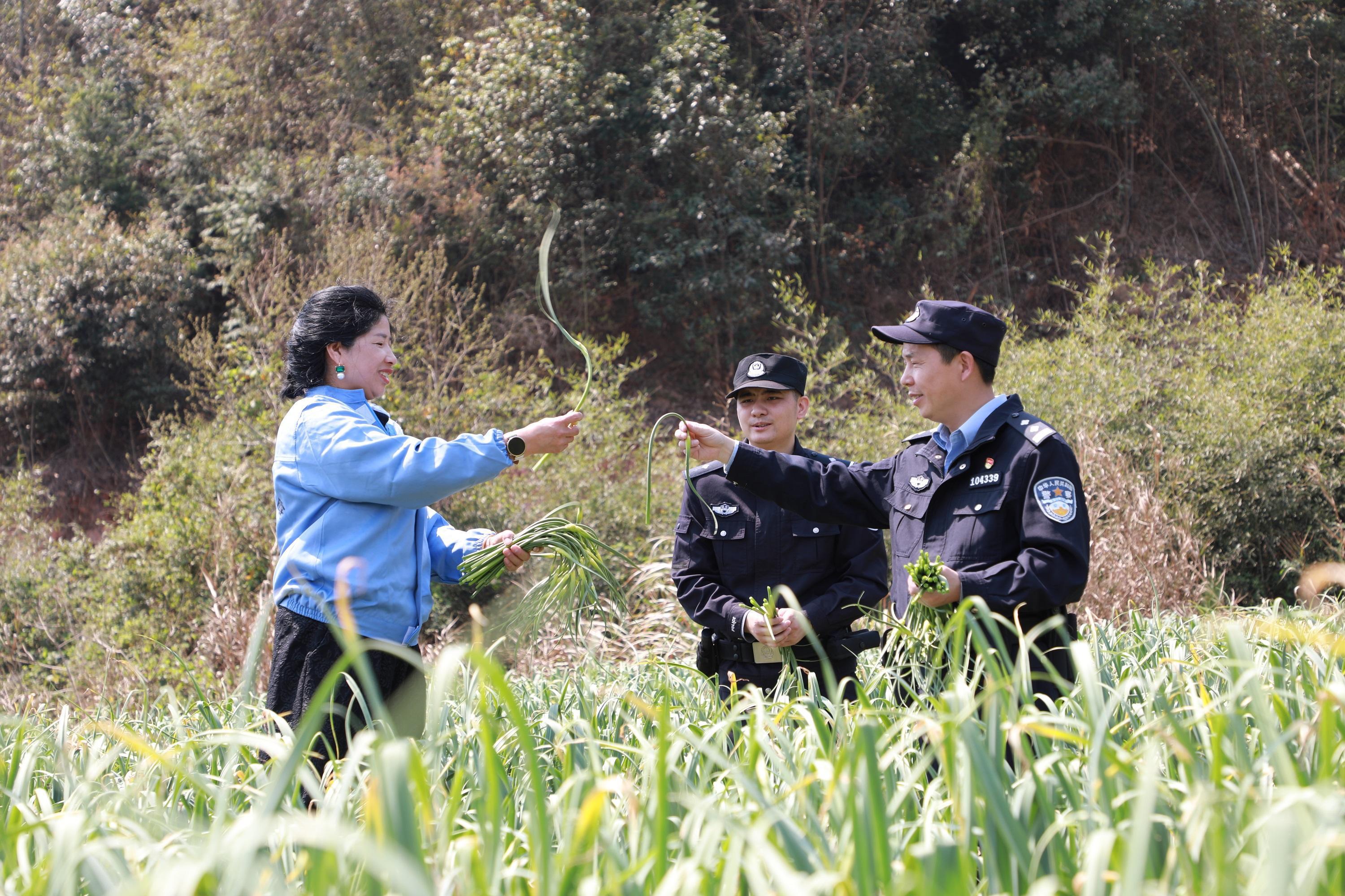 江西省吉水縣螺田鎮(zhèn)綠油油的蒜子進入采收旺季,吉水縣公安局民警深入蒜田地頭,化解矛盾糾紛、排查安全隱患、宣傳防范知識。圖為民警深入蒜田了解農(nóng)資化肥使用情況。