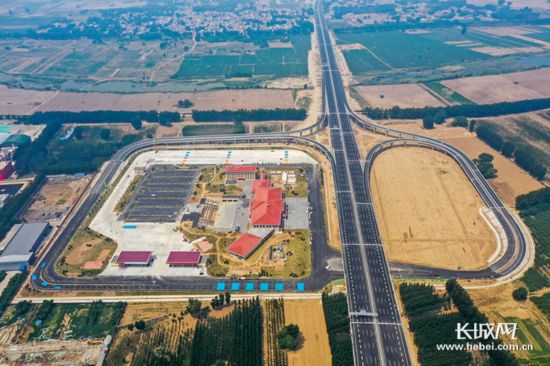 航拍榮烏高速新線雄安北服務(wù)區(qū)。