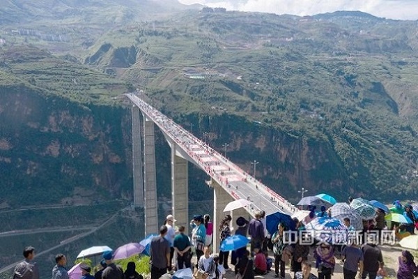 6月30日,由蜀道投資集團(tuán)所屬四川路橋建設(shè)集團(tuán)股份有限公司承建的涼山彝族自治州金陽河三峽連心橋建成通車,為彝族群眾架起鄉(xiāng)村振興“快速通道”。大橋位于涼山州金陽縣城北,全長757.7米,最大跨徑200米,其中6號橋墩高達(dá)196米。