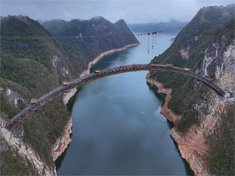 3月5日,貴州甕馬鐵路南北延伸線項目控制性工程烏江特大橋順利合龍。烏江特大橋全橋長約520米,主跨337米,橋面至江面高度約200米。