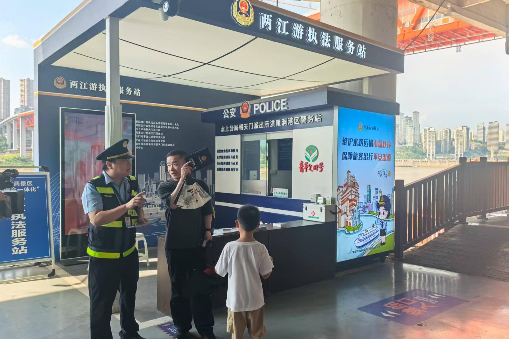 針對兩江游游客易迷路問題,執(zhí)法總隊設(shè)立服務(wù)站,提供道路指引、乘船咨詢等服務(wù),配備急救用品、飲用水、藥品等免費物資。據(jù)介紹,今年暑運兩江游日均客流超1.1萬人,服務(wù)站日均服務(wù)超300人次。