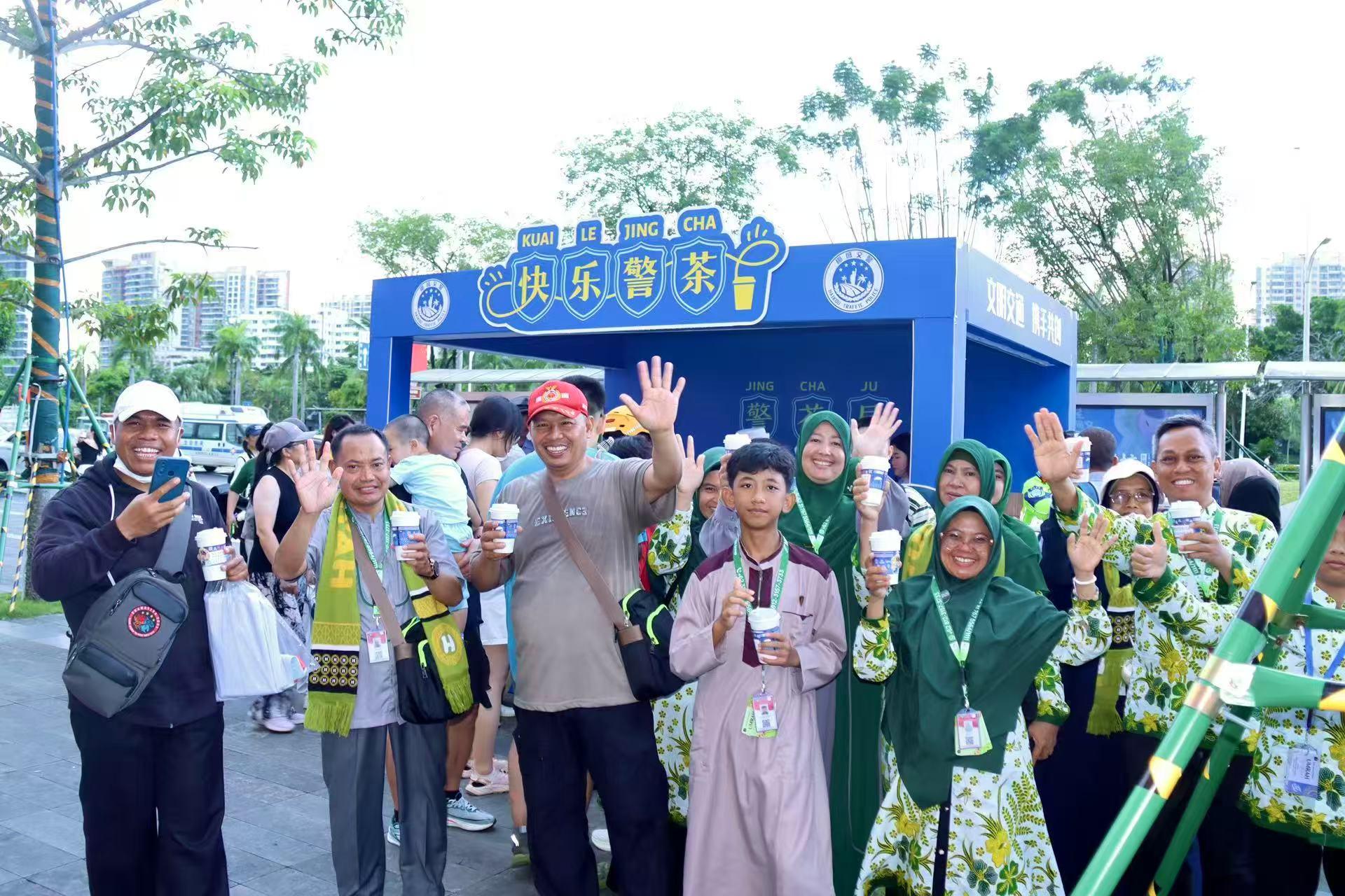 “警茶局”的魅力,還吸引了八方來客。10月2日下午,來自印度尼西亞的馬克在導游的幫助下,成功答對了所有題目。他興奮地舉起手中的“警茶”,為這個創(chuàng)意活動點贊。