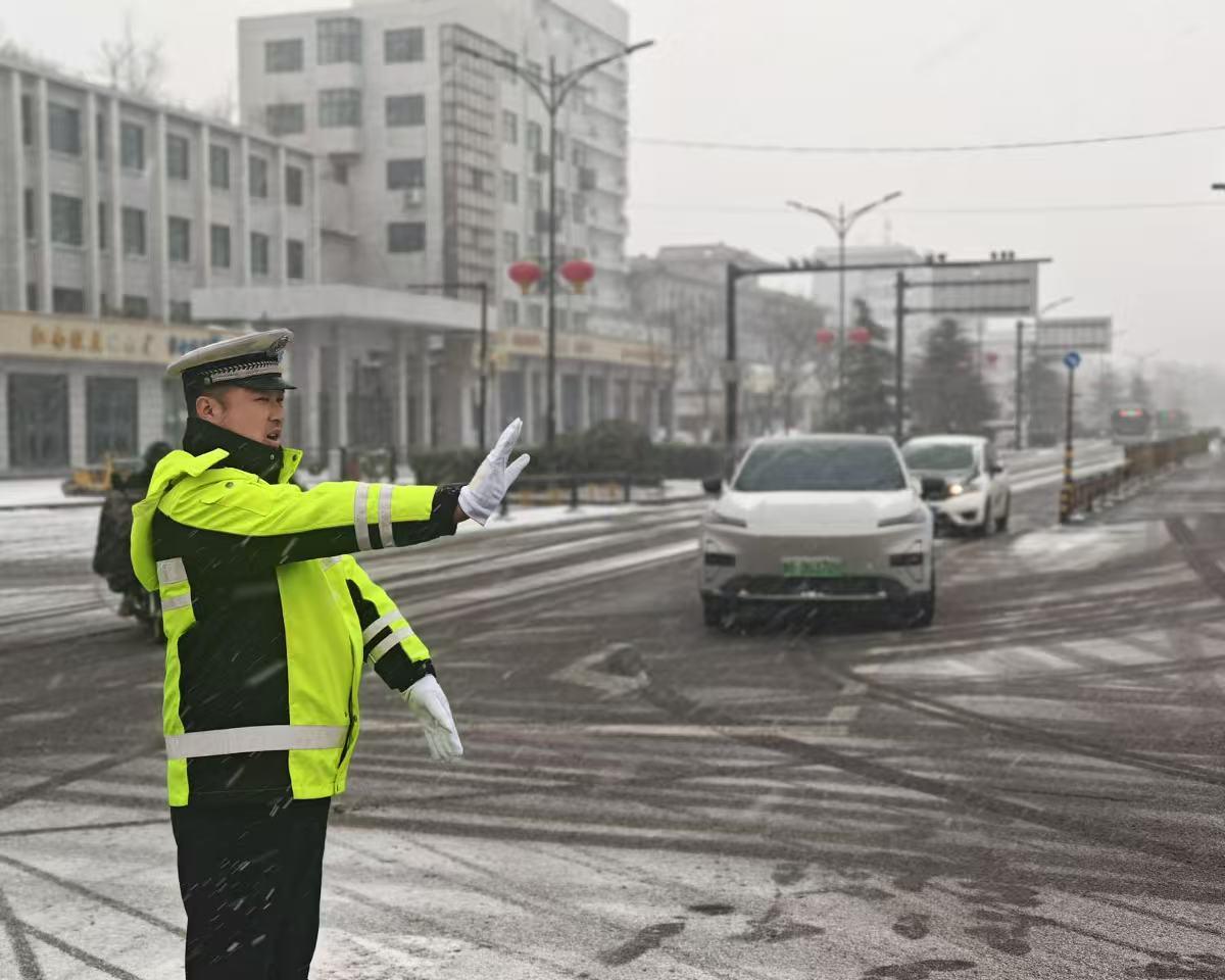 降雪伊始,市區(qū)各勤務大隊全體民警、輔警迅速進入戰(zhàn)時狀態(tài),大隊領(lǐng)導帶頭沖鋒,分赴轄區(qū)各主要路口、路段指揮調(diào)度。開封交警采取“定點值守+動態(tài)巡邏”相結(jié)合的勤務模式,加大巡查頻次和密度,實時掌握路面狀況。針對降雪導致的車輛緩行,開封交警靈活調(diào)配警力,在關(guān)鍵節(jié)點加強指揮疏導,實施遠端分流,有效防止了長時間、大面積交通擁堵。風雪中,民警們一遍遍提醒過往車輛謹慎駕駛,及時處置各類突發(fā)情況。雪花浸濕了衣衫,他們卻用不變的堅守,在城區(qū)道路上筑起了一道堅實的安全防線,守護著市民的平安出行。