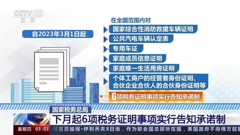 國家稅務總局 下月起6項稅務證明事項實行告知承諾制