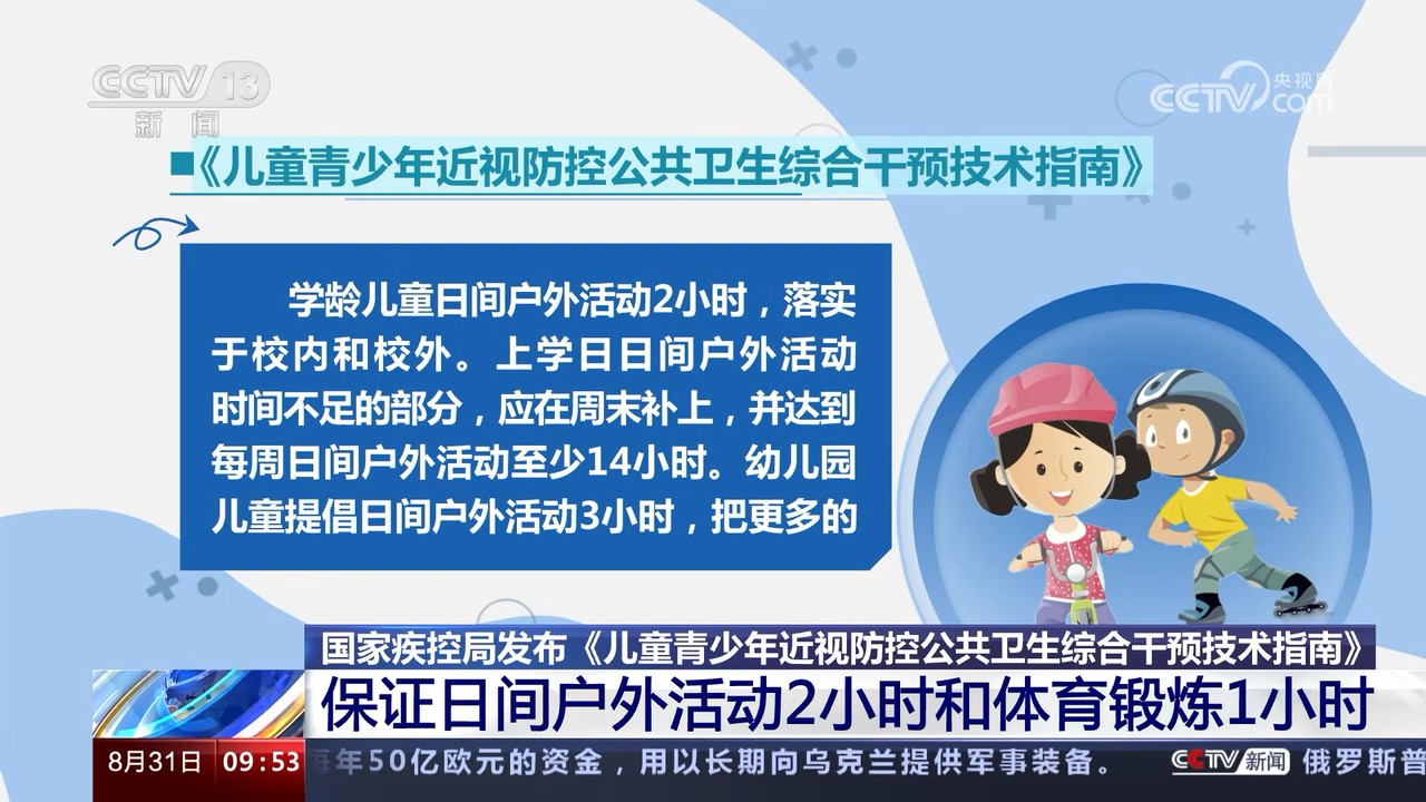 國(guó)家疾控局發(fā)布《兒童青少年近視防控公共衛(wèi)生綜合干預(yù)技術(shù)指南》 保證日間戶外活動(dòng)2小時(shí)和體育鍛煉1小時(shí)