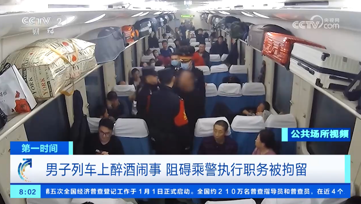 男子列車上醉酒鬧事 阻礙乘警執(zhí)行職務(wù)被拘留