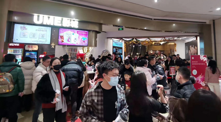 2月14日,UME影城(南通中南CBD店)等候區(qū)人流如織。(受訪對(duì)象供圖)