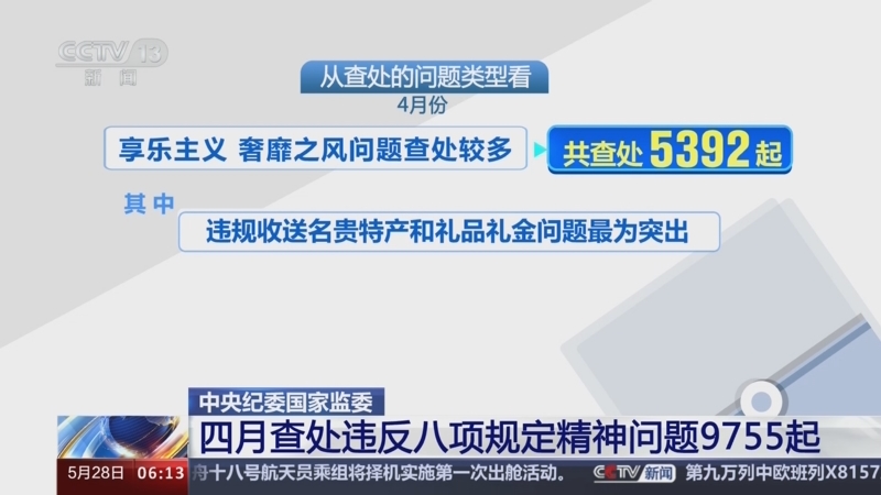 中央紀委國家監(jiān)委 四月查處違反八項規(guī)定精神問題9755起