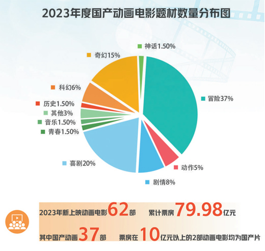 現(xiàn)實(shí)和預(yù)期,給了動(dòng)畫人開(kāi)拓事業(yè)的底氣。據(jù)不完全統(tǒng)計(jì),2013年,上映33部動(dòng)畫電影,總票房為16.4億元,國(guó)產(chǎn)動(dòng)畫占比為38%。2023年新上映動(dòng)畫電影62部,累計(jì)票房79.98億元,其中,國(guó)產(chǎn)動(dòng)畫37部(含港澳臺(tái));票房在10億元以上的2部動(dòng)畫電影均為國(guó)產(chǎn)片。無(wú)論作品數(shù)量還是票房表現(xiàn),國(guó)產(chǎn)動(dòng)畫電影都樹立了自己的“主場(chǎng)優(yōu)勢(shì)”,也在觀眾中贏得信任與口碑。
