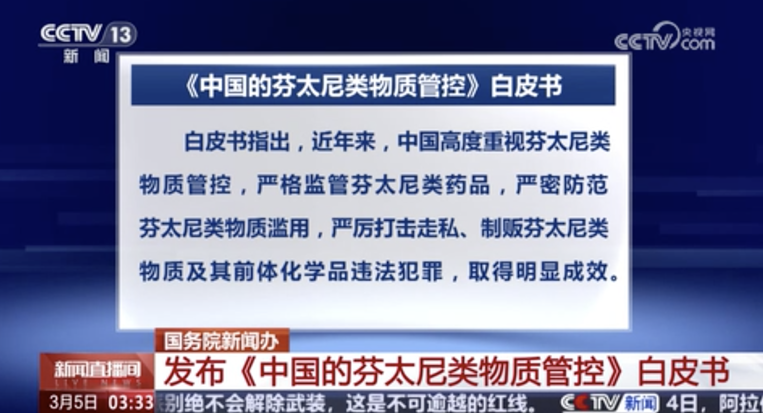 國(guó)務(wù)院新聞辦 發(fā)布《中國(guó)的芬太尼類(lèi)物質(zhì)管控》白皮書(shū)