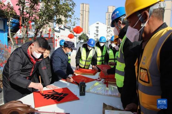 春節(jié)臨近,多地組織書法志愿者走進社區(qū)、工地等場所,為人們書寫春聯(lián)和福字,迎接春節(jié)的到來。