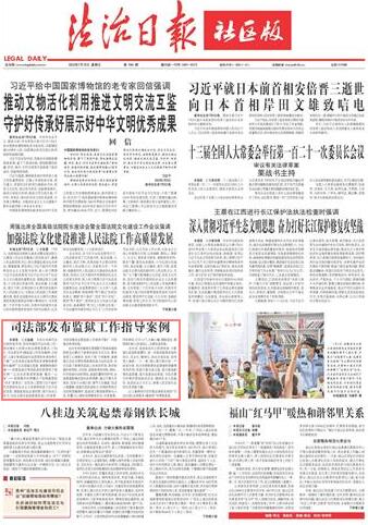 本報(bào)訊 記者趙婕 為充分發(fā)揮司法行政職能作用,指導(dǎo)和規(guī)范司法行政工作,更好滿足人民群眾的法律服務(wù)需求,7月8日,司法部發(fā)布4篇監(jiān)獄工作指導(dǎo)案例,分別是“上海市青浦監(jiān)獄沖動(dòng)型罪犯朱某的矯正個(gè)案”“山東省泰安監(jiān)獄罪犯李某精準(zhǔn)教育轉(zhuǎn)化案例”“眾志成城化危情 真情教轉(zhuǎn)挽靈魂——西青監(jiān)獄對(duì)罪犯楊某的管理和干預(yù)實(shí)例”“讓法治思維普照高墻‘最后一公里’——探索集中關(guān)押模式下的限減罪犯‘四步’教育法”,旨在深入貫徹習(xí)近平新時(shí)代中國(guó)特色社會(huì)主義思想特別是習(xí)近平法治思想,增強(qiáng)監(jiān)獄執(zhí)法透明度,提升執(zhí)法公信力,向社會(huì)展示監(jiān)獄教育改造工作成果,為指導(dǎo)規(guī)范全國(guó)監(jiān)獄工作提供可推廣、可借鑒的典型經(jīng)驗(yàn)。