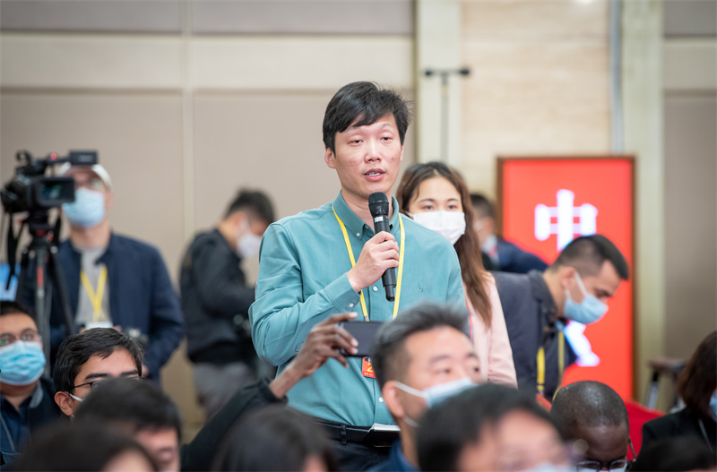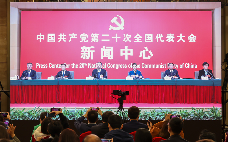 10月19日,黨的二十大新聞中心舉行記者招待會(huì)。圖為本報(bào)記者提問。 本報(bào)記者 王建軍 攝