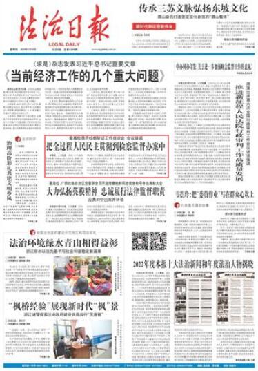 本報訊 記者張昊 黨的二十大報告專章部署“發(fā)展全過程人民民主,保障人民當家作主”,特別要求“完善辦事公開制度”。2月15日,最高人民檢察院召開檢察聽證工作座談會,就加強和改進檢察聽證工作向檢察聽證員代表問需求計。最高檢黨組書記、檢察長張軍出席會議,圍繞檢察機關(guān)深入貫徹黨的二十大精神,全面貫徹習(xí)近平法治思想,踐行全過程人民民主,進一步做好檢察聽證工作提出明確要求。