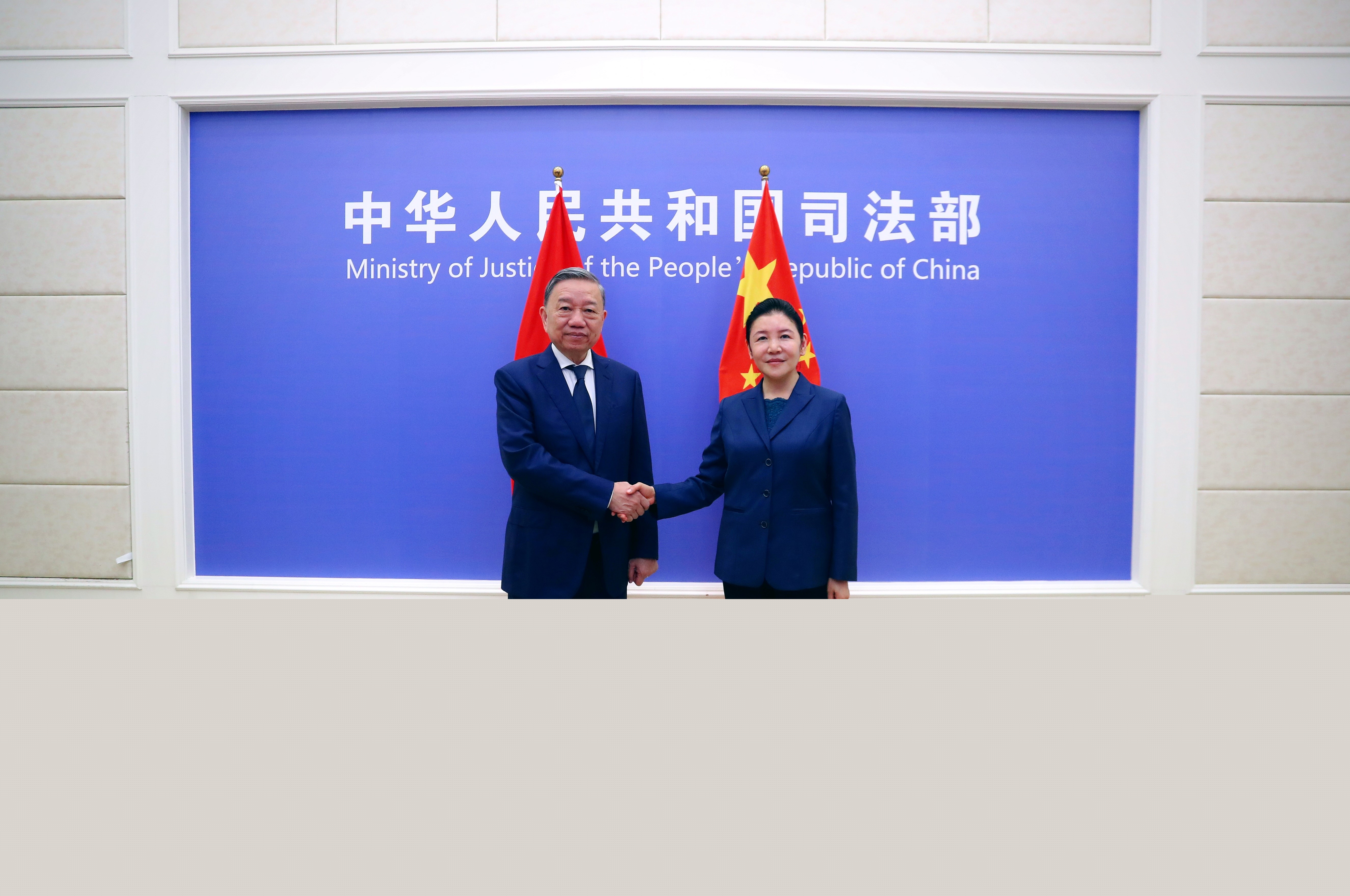 9月14日上午,司法部部長(zhǎng)賀榮在京會(huì)見越共中央政治局委員、越南公安部部長(zhǎng)蘇林大將一行,就加強(qiáng)兩部相關(guān)職能合作進(jìn)行了務(wù)實(shí)交流。