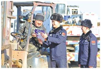 圖為遼寧出入境邊防檢查總站丹東邊境管理支隊新興邊境派出所民警近日深入轄區(qū)碼頭,一邊對上塢船只進(jìn)行登記檢查,一邊宣傳邊境法規(guī)政策與防范電信網(wǎng)絡(luò)詐騙知識。 鞠鑫 攝