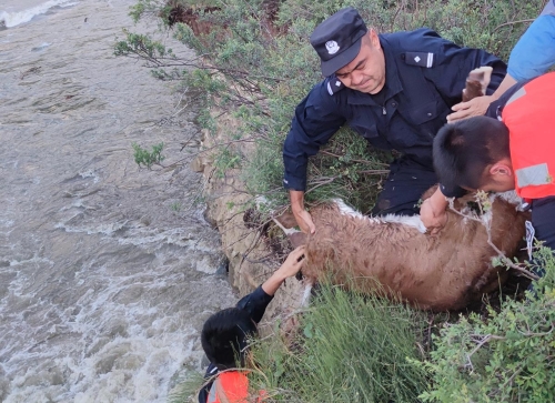 6月5日,新疆阿勒泰邊境管理支隊(duì)沖乎爾邊境派出所接到牧民報(bào)警稱(chēng)自家小牛不慎掉下河崖,請(qǐng)求派出所協(xié)助救援。接到報(bào)警電話(huà)后,派出所立即組織4名民警趕赴現(xiàn)場(chǎng),身綁救援繩下河崖施救,經(jīng)過(guò)近1個(gè)小時(shí)的救援,在民警和現(xiàn)場(chǎng)群眾的協(xié)同配合下,成功將小牛營(yíng)救上岸,為牧民群眾挽回經(jīng)濟(jì)損失。
