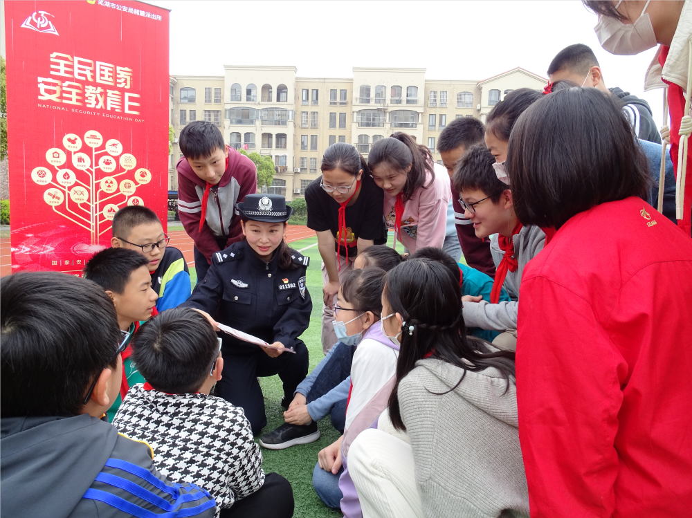4月14日,安徽省蕪湖市公安局鏡湖分局赭麓派出所聯(lián)合轄區(qū)梅蓮路小學(xué)開(kāi)展“國(guó)家安全,從我做起”宣傳教育活動(dòng)。民警通過(guò)播放宣傳片、擺放展板、發(fā)放宣傳資料、面對(duì)面提問(wèn)等方式,向孩子們宣傳國(guó)家安全相關(guān)知識(shí),教育孩子從小樹(shù)立國(guó)家安全意識(shí)。